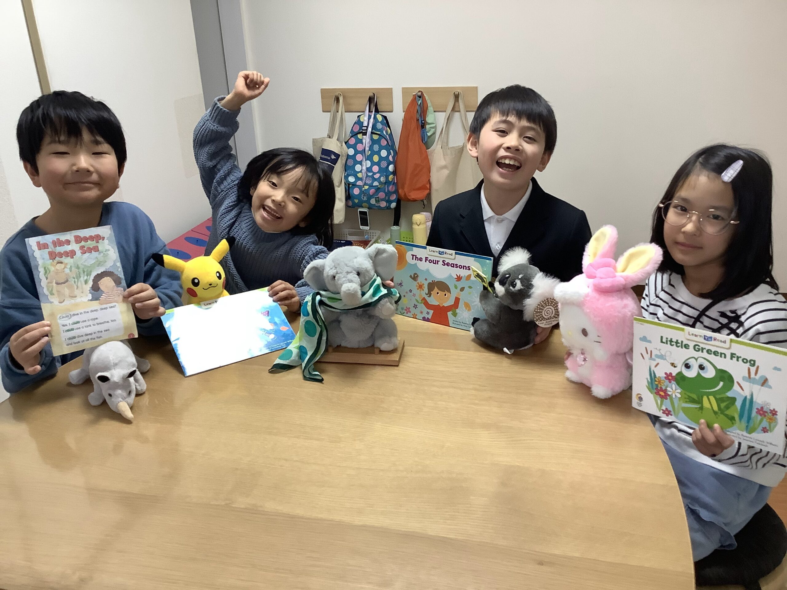 おうちで全く英語に触れていない子や音声や動画教材を見ているだけだった子が、数か月で英語の歌やチャンツを口ずさみ始めて、簡単な会話のやりとり、読み物の暗唱・音読ができるようになります。