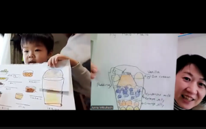英語でいつもの挨拶をして、一時停止や再生ボタンを押しながら、自分のペースで活動をしたり、先生との会話を楽しむように遊び感覚で取り組んでいます。